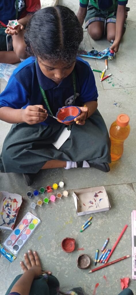 In connection to Diwali festival we have conducted CCA Activity in our school today. Mud- Diyas were painted and decorated with much fun and frolic to bring in the festive spirit of Diwali. Let the light of positivity spread.